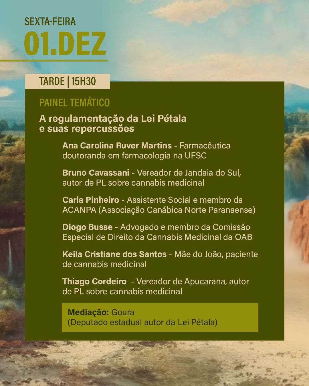 Na sequência, às 15h30, o painel temático: A regulamentação da Lei Pétala e suas repercussões.